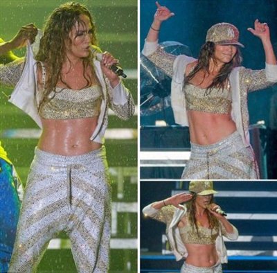 Παρά τα 42 της χρόνια, η Λατίνα σταρ παραμένει σέξι και με κορμί που θα ζήλευαν πολλές εικοσάρες. Η αλήθεια είναι ότι οι περισσότεροι τη μνημόνευαν για ένα πολύ συγκεκριμένο σημείο της σώματός της στην όπισθεν. Εκείνη παρόλα αυτά βάλθηκε να αλλάξει ρότα στα βλέμματα των ανδρών επιδεικνύοντας τους καλογυμνασμένους κοιλιακούς της. Στη Βραζιλία όπου βρίσκεται στο πλαίσιο της περιοδείας της, η Τζένιφερ Λόπεζ ανέβηκε στη σκηνή και με ένα κοντό μπουστάκι έδειξε σε όλους, τους ιδρωμένους αλλά καλοσμιλεμένους κοιλιακούς της μυς που διαγράφονταν καθώς εκείνη λικνιζόταν στους ρυθμούς των τραγουδιών της.