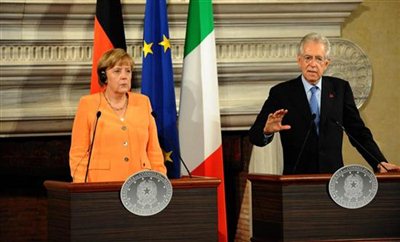 Η γερμανίδα καγκελάριος, Άνγκελα Μέρκελ τόνισε ότι «θέλουμε να ξεπεράσουμε μαζί τις δυσκολίες. Μιλήσαμε και για τις τόσες μεταρρυθμίσεις που ενέκρινε η κυβέρνηση του Μάριο Μόντι, μέσα σε πολύ σύντομο χρονικό διάστημα. Θα συνεχίσουμε τις συνομιλίες για ανταλλαγή εμπειριών, για την αύξηση της απασχόλησης, τη στήριξη των επιχειρήσεων και τη βελτίωση των υποδομών».