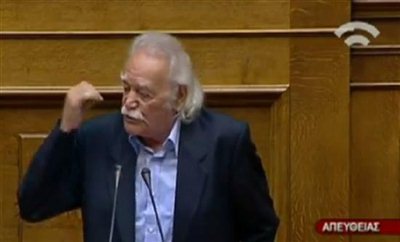 Εάν δεν ανταποκριθούμε και εμείς θα μας πάρει ο διάολος και θα μας σηκώσει, είπε από το βήμα της Βουλής ο Μανώλης Γλέζος, που υποστήριξε ότι η Ελλάδα σήμερα έχει υποδουλωθεί στο Μνημόνιο.