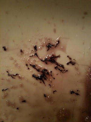 So I know nobody probably wants to see this because the truth is scary and ignorance is bliss but if you'd like to know if you've been affected by chemtrails (aerosol spraying) you can try this at home. What your looking at are synthetic nanofibers that are sprayed from planes along with aluminum and barium. Use some grape juice or red wine and swish it around your mouth for 30 seconds and spit it out into the sink, the fibers are attracted and killed by the acid in grape juice as well as dyed so you can visible see them. Now this just came from my mouth, these fibers disperse throughout your whole body, because we breath this crap all day long. It's in our water and food as well, it's pretty much in everything. You can also look up Morgellons disease. Try it at home and see for yourself.= )