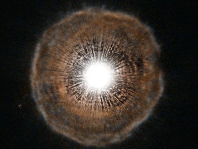 Αξίζει να σημειωθεί ότι το συγκεκριμένο αστέρι – κόκκινος γίγαντας, είναι στην ουσία μια μικροσκοπική κουκκίδα στο κέντρο της φωτογραφίας, ενώ το υπόλοιπο της εικόνας δημιουργείται λόγω της φωτεινότητας του και των αερίων από την έκρηξη. Περισσότερες πληροφορίες για το U Cam στο site της NASA otherside