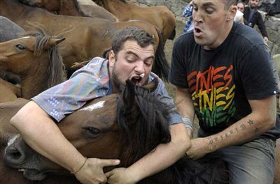 Το ετήσιο Φεστιβάλ «Rapa das Bestas» διοργανώνεται στην Ισπανία εδώ και 400 χρόνια και στην ουσία πρόκειται για έναν περίεργο αγώνα πάλης μεταξύ ανθρώπων και άγριων αλόγων, προκειμένου τα τελευταία να σημανθούν και να… κουρευτούν οι χαίτες και οι ουρές τους.
