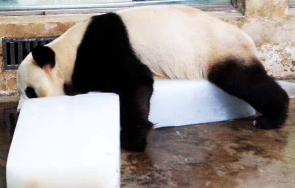 Οι υπεύθυνοι στο Ζωολογικό Κήπο Wuhan στην επαρχία Hubei της Κίνας έκαναν το θαύμα τους, λυτρώνοντας το ζώο από τον καύσωνα. Τοποθέτησαν μεγάλα κομμάτια πάγου στο κλουβί του και επέτρεψαν στο πάντα να κάνει μερικές βουτιές στην… πισίνα!