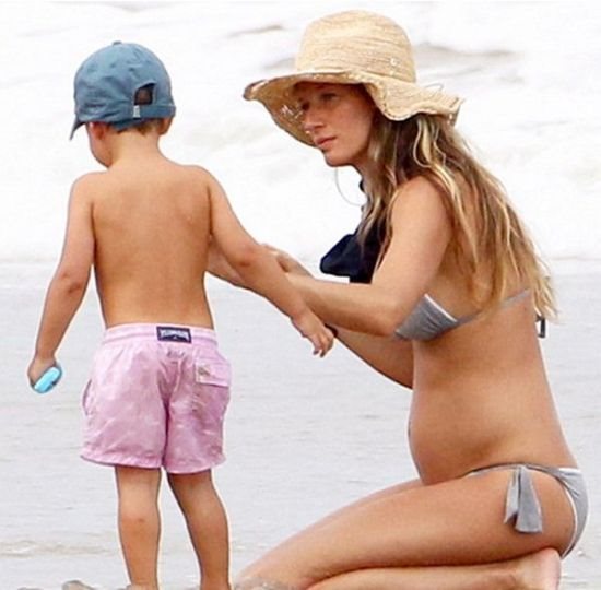 Μπορεί η ίδια να μην παραδέχτηκε δημόσια ότι είναι έγκυος, παρόλα αυτά όμως, οι παπαράτσι έκαναν καλά τη δουλειά τους και από το φωτογραφικό φακό δεν μπορεί να κρυφτεί κανένας.Και ειδικά τώρα που είναι καλοκαίρι και η Ζιζέλ βρέθηκε σε παραλία της Κόστα Ρίκα μαζί με το δίχρονο γιο της η κοιλιά της δεν άφησε περιθώρια για αμφιβολίες. Η 31χρονη καλλονή πέρασε τον περισσότερο χρόνο, κυριολεκτικά πάνω από τον δίχρονο γιο της, Μπέντζαμιν, κυνηγώντας τον σε όλη την παραλία και η αλήθεια είναι ότι δεν ενοχλήθηκε ιδιαίτερα από την παρουσία των φωτογράφων.