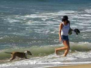 Τώρα το καλοκαίρι πολλές φορές συναντάμε στην παραλία σκύλους, που φέρνουν μαζί οι ιδιοκτήτες τους.