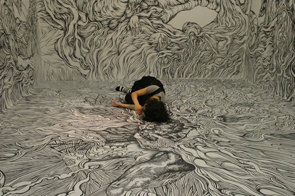 Τρισδιάστατα σχέδια, τεράστιες τοιχογραφίες, ψυχεδελικά πρόσωπα, σουρεαλιστικά μοτίβα, τις περισσότερες φορές επαναλαμβανόμενα, συνθέτουν έναν χώρο που παραπέμπει σε σκηνικό ταινίας επιστημονικής φαντασίας.