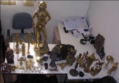 Επιπλέον, σε παρακείμενο χώρο, σε μία εγκαταλελειμμένη παράγκα βρέθηκαν επιμελώς κρυμμένα και θαμμένα 29 ορειχάλκινα αγαλματίδια διαφόρων διαστάσεων, 38 τεμάχια κοσμημάτων, ένα κινητό τηλέφωνο και ένα ζευγάρι γυαλιά ηλίου. Από την μέχρι τώρα έρευνα έχουν εξιχνιαστεί δυο κλοπές καλωδίων που διέπραξαν στις αρχές Αύγουστου από το υπόγειο δίκτυο φωτισμού στην νέα περιφερειακή οδό στην περιοχή Καρακόνερο και πριν μία εβδομάδα από αποθήκη ενός 59χρονου στην Ρόδο.