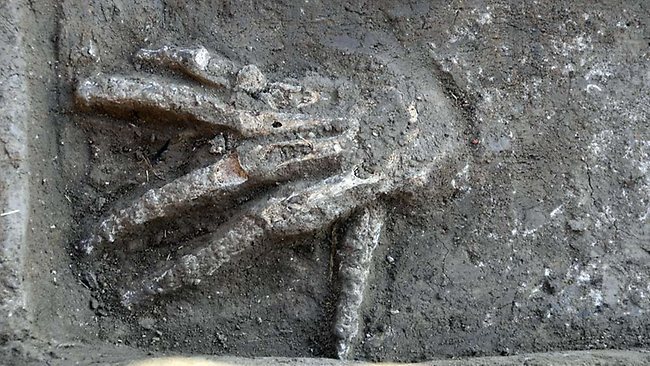 Μια ομάδα αρχαιολόγων έφερε στο φως 3600 χρόνων οστά απο 16 ακρωτηριασμένα χέρια σε τέσσερις λάκκους, και πιστεύεται ότι είναι απο μια βασιλική ένωση Υξώς.