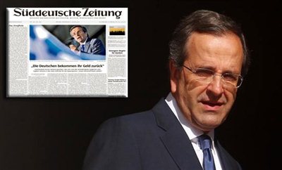 Στη συνέντευξη του στην γερμανική εφημερίδα Suddeutsche Zeitung που δημοσιεύεται αύριο ο πρωθυπουργός δεσμεύτηκε «προσωπικά» ότι η Ελλάδα θα εξοφλήσει όλη την εξωτερική οικονομική βοήθεια, που λαμβάνει, και θα υλοποιήσει τις μεταρρυθμίσεις. Η Ελλάδα θα ξεπληρώσει τα δάνεια ύψους άνω των 100 δισεκατομμυρίων ευρώ, υπόσχεται ο κ. Σαμαράς. «Το εγγυώμαι προσωπικά», δηλώνει και επιχειρώντας, όπως επισημαίνει η εφημερίδα, να αντικρούσει τον αυξανόμενο σκεπτικισμό απέναντι στη χώρα του, τονίζει: «Σας διαβεβαιώ: θα το πετύχουμε». Εμφανίζεται δε αποφασισμένος να υλοποιήσει σε κάθε περίπτωση τις περικοπές που ζητήθηκαν για τον προϋπολογισμό, ύψους 11,5 δισεκατομμυρίων ευρώ, οι οποίες αποτελούν προϋπόθεση για την καταβολή της επόμενης δόσης του δανείου. Εάν δεν δοθεί η επόμενη δόση, «η Ελλάδα χρεοκοπεί», δηλώνει χαρακτηριστικά.