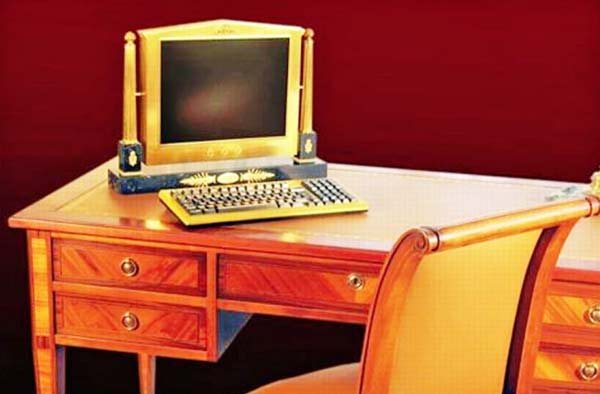 Ο επίχρυσος ηλεκτρονικός υπολογιστής, που κατασκευάστηκε στη Γαλλία, συνοδεύεται από παρόμοιου στιλ στικάκι αλλά και ποντίκι αντίστοιχου σχεδιασμού, για όσους επιθυμούν να απολαύσουν μια ολοκληρωμένη εμπειρία… πολυτέλειας!
