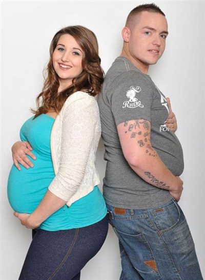 Ο 25χρονος Mike Dowdall υποφέρει από πρωινές ναυτίες, λιγούρες, εξάψεις, ακόμα και… πρήξιμο στην κοιλιά, ακριβώς όπως και η έγκυος κοπέλα του Amanda Bennett.
