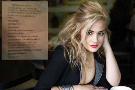 Μεταξύ άλλων γράφει: "Μποφίλιου είσαι ανεπιθύμητη...ΕΡΧΟΜΑΣΤΕ" .