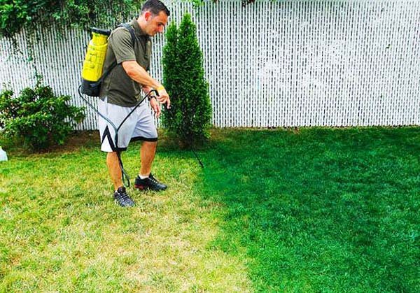 Μάλιστα, καλά διαβάζετε. Οι υπεύθυνοι της εταιρείας βάφουν το γκαζόν σε έντονο πράσινο χρώμα, δίνοντας ξανά τη χαμένη «αίγλη» στον κήπο ή την αυλή. Η βαφή εφαρμόζεται στο χορτάρι με ψεκασμούς και μπορεί να διατηρηθεί ανέπαφη μέχρι και πέντε μήνες.