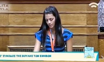ΥΠΑΡΧΕΙ ΕΛΠΙΔΑ Η μόνη παρέμβαση αυτού του τύπου που παρίστανε τον πρόεδρο της βουλής των εφήβων....ήταν κατά μιας έφηβης που τόλμησε να πεί ότι πρώτα πρέπει να αντιμετωπιστεί η λαθρομετανάστευση και μετά να ψηφίσουν τους νόμους τους... Δεν θα πούμε πολλά, ακούστε την ομιλία της έφηβης και θα καταλάβετε.. Βίντεο!
