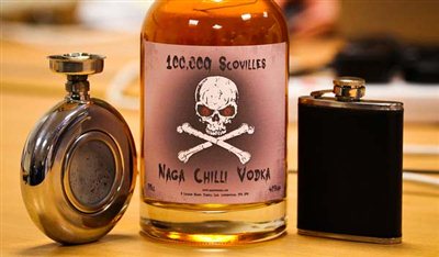Για όσους είναι εθισμένοι στην καψαϊκίνη (η δραστική καυτερή ουσία του τσίλι), η καυτερή Naga Chilli Vodka υπόσχεται να βάλει φωτiά στον ουρανίσκο και τη γλώσσα, καθώς παρασκευάζεται από το πλέον καυτό τσίλι στον κόσμο, το περίφημο Naga Jolokia.