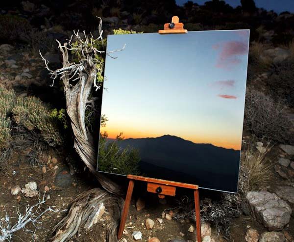 Διαφορετικά τοπία από το «Joshua Tree National Park» στη νότια Καλιφόρνια αντανακλώνται πάνω στους καθρέφτες, «για να τεκμηριώσουν τη μοναδική συμβολή των αντίθετων στοιχείων του περιβάλλοντος στην τέχνη», όπως επισημαίνει ο καλλιτέχνης.