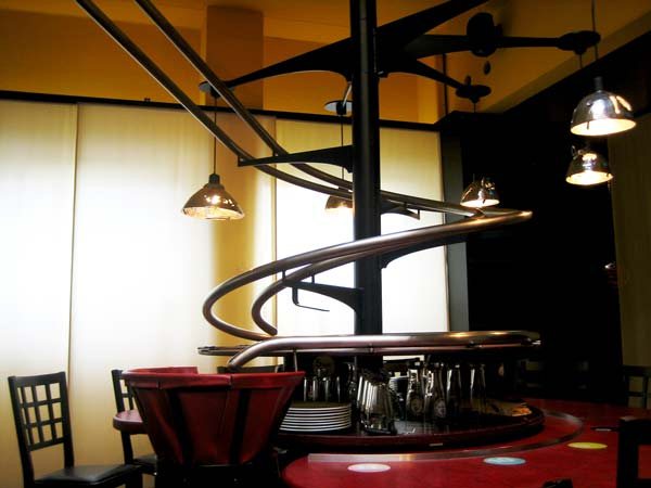Το πρώτο αυτοματοποιημένο εστιατόριο στον κόσμο δίνει τη δυνατότητα στους πελάτες να παραγγείλουν μέσω μιας οθόνης αφής, που λειτουργεί εν είδει καταλόγου, υπολογίζοντας το χρόνο παράδοσης, ενώ το φαγητό και το ποτό φτάνουν στο τραπέζι πάνω σε μεταλλικές ράγες και ιμάντες μεταφοράς που θυμίζουν… παιδικό τρενάκι!
