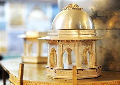 22 χρόνια μετά η ρεπλίκα του Ταζ Μαχάλ είναι σχεδόν έτοιμη και κοστίζει ούτε λίγο ούτε πολύ 11,5 εκατομμύρια λίρες. Ινδική καλλιγραφία, λεπτομέρεια στην κατασκευή και πολλοί πολύτιμοι λίθοι, διαμάντια και ρουμπίνια, ενώ ο χρυσός και το ασήμι κυριαρχούν παντού.