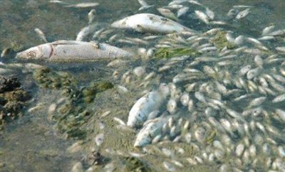 Εκατοντάδες ψάρια επιπλέουν μισοπεθαμένα στην επιφάνεια του νερού, ενώ άλλα τόσα έχει βρεθεί ήδη νεκρά.