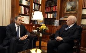 Ο Αντώνης Σαμαράς επισκέφθηκε τον Κάρολο Παπούλια για να τον ενημερώσει για την απόφαση του Eurogroup, που άναψε το πράσινο φως για τη δόση μαμούθ των 44 δισ. ευρώ προς την Ελλάδα.