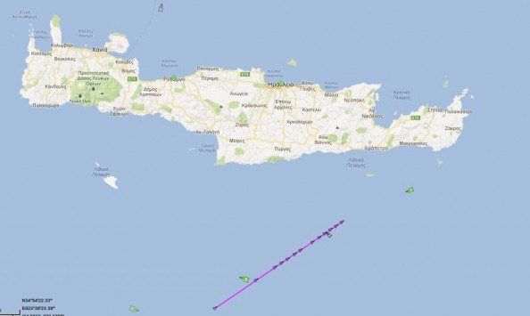 Σύμφωνα με το marinetraffic.com το πλοίο βρίσκεται στα νερά Νότια του Νομού Ηρακλείου από τις 02:49 τα ξημερώματα της Πέμπτης ή τουλάχιστο τότε άνοιξε το σύστημα AIS, αφού δεν υπάρχει αρχείο της πορείας του για τις προηγούμενες ημέρες. Tουλάχιστο για 15-20 ημέρες είχε κλειστό το σύστημα εντοπισμού του, όπου τότε ερευνούσε την περιοχή του Ιονίου Πελάγους.