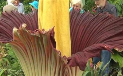 Είναι ένα σπάνιο λουλούδι με ύψος δυο μέτρων και με οσμή σαν σάρκα σε αποσύνθεση. Ανθίζει κάθε εφτά χρόνια και το άνθος διατηρείται μόλις τρεις μέρες. Λόγω της οσμής του λέγεται λουλούδι- πτώμα και ανακαλύφτηκε το 1878 σε δάσος της Σουμάτρας. Το φυτό αυτό υπάρχει και στον Βοτανικό Κήπο της Μελβούρνης και αυτές τις μέρες άνθισε για πρώτη φορά και συγκεντρώνει δεκάδες χιλιάδες επισκέπτες, όπως αναφέρει το news. Το λουλούδι - πτώμα, όπως ονομάζεται το Αμορφόφαλους Τίτανουμ (Amorphophallus titanum), έχει πάρει το όνομά του από τη μυρωδιά που αναδύει, η οποία προσελκύει έντομα για γονιμοποίηση.