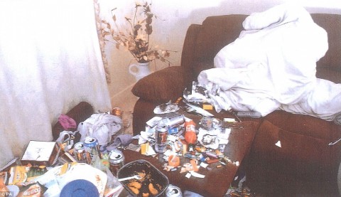 Στην κούνια που βρέθηκε η σορός του παιδιού ήταν επίσης άδεια μπουκάλια, βότκες, και διάφορα άλλα σκουπίδια ενώ οι πάγκοι της κουζίνας ήταν καλυμμένοι από άπλυτα πιάτα, κουτιά μαργαρίνης και άλλες συσκευασίες τροφίμων.
