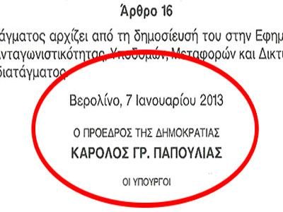 Προεδρικό Διάταγμα με υπογραφή...από Βερολίνο!!!