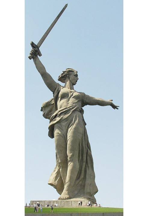 Βρίσκεται στο Βόλγκογκαρτν στην Ρωσία και αποτελεί μνημείο για την μάχη του Στάλιγκραντ. Το συνολικό ύψος του είναι 85 μέτρα και το βάρος 8.000 τόνοι. Μόνο το σπαθί έχει μήκος 33 μέτρα και ζυγίζει 14 τόνους!