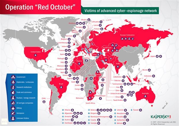 Ενα διεθνές δίκτυο ψηφιακής κατασκοπείας το οποίο αποτελούσαν χάκερς προερχόμενοι κατά κύριο λόγο από ρωσόφωνες χώρες και «χτυπούσαν» διπλωματικές, κυβερνητικές και ερευνητικές υπηρεσίες, αλλά και βιομηχανίες πετρελαίου και φυσικού αερίου αποκάλυψαν οι ειδικοί της ρωσικής εταιρείας λογισμικού Kaspersky Lab.