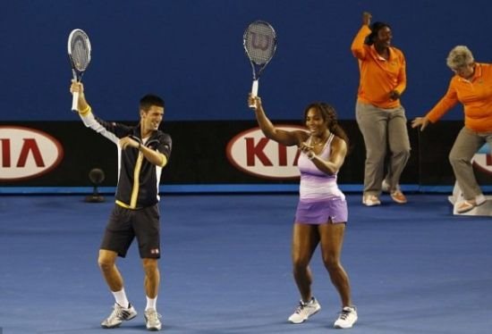 Είναι διάσημοι τενίστες και παγκοσμίως αναγνωρισμένοι για τις ικανότητές τους στο σπορ που έχουν διαλέξει να πρωταγωνιστούν. Ο λόγος για τον Σέρβο Νόβακ Τζόκοβιτς (Novak Djokovic) και την Αμερικανίδα Σερένα Γουίλιαμς (Serena Williams) που αποδεικνύουν πως έχουν κι άλλες ικανότητες. Οι δυο τους σπάζοντας το πρωτόκολλο έδειξαν πως είναι παιδιά με έμφυτο χιούμορ και χορευτικές ικανότητες χορεύοντας το "Gangnam Style". Ο χορός τους έγινε σύμφωνα με το radar, κατά τη διάρκεια αγώνα επίδειξης στη Μελβούρνη και όπως ήταν φυσικό οι δύο αθλητές γνώρισαν την αποθέωση από το κοινό. Δείτε το βίντεο: