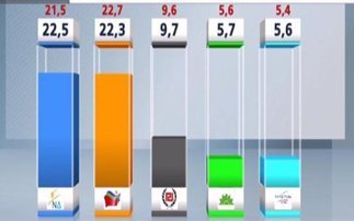 Συγκεκριμένα, στη δημοσκόπηση της Marc για την τηλεόραση του Alpha, στην πρόθεση ψήφου η ΝΔ συγκεντρώνει ποσοστό 22,5% με τον ΣΥΡΙΖΑ να έχει 22,3 %.