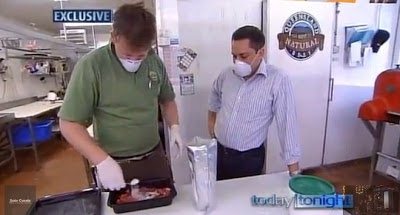 Ανακάλυψα ένα ενδιαφέρον βίντεο, απόσπασμα από τηλεοπτικό ρεπορτάζ αμερικανικού τηλεοπτικού σταθμού, που περιγράφει μια διαδεδομένη τεχνική επεξεργασίας κρεάτων, κατά την οποία, «ρετάλια» κρεάτων ενώνονται μεταξύ τους, για να πωληθούν σαν πολύ ακριβότερα μέρη του ζώου, όπως για παράδειγμα σαν μοσχαρίσια φιλέτα.