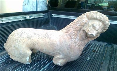 Αυτό είναι το αρχαίο μαρμάρινο λιοντάρι, που εχθές εντοπίσθηκε από αστυνομικούς στην Ιτέα, λίγο πριν πωληθεί έναντι 500.000 ευρώ. Το μαρμάρινο λιοντάρι είναι των αρχαϊκών κλασικών χρόνων (5ος - 4ος αιώνας πΧ), έχει διαστάσεις μήκους 110 εκ. και κυμαινόμενο πλάτος 30-35 εκ. και πιθανόν είχε χρησιμοποιηθεί σαν επιτύμβιο σήμα στην αρχαιότητα.