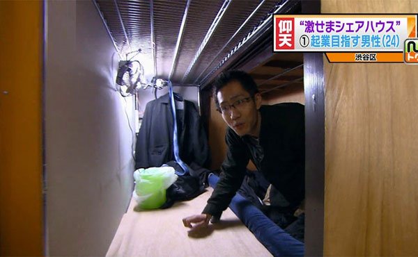 Είναι γνωστό ότι το Τόκιο είναι από τις πιο πυκνοκατοικημένες πόλεις στον κόσμο, με μεγάλο οικιστικό πρόβλημα παρόλο που τα διαμερίσματα είναι πολύ μικρά. Η τελευταία μόδα βέβαια αγγίζει, αν δεν ξεπερνά, τα όρια της γελοιότητας. Οι προς ενοικίαση χώροι είναι ουσιαστικά τμήματα μια ντουλάπας, με επιφάνεια μικρότερη των δύο τετραγωνικών μέτρων, όπου κάποιος ίσα-ίσα χωράει να ξαπλώσει και να κρεμάσει τα ρούχα που φορά. Τις περισσότερες δεν υπάρχουν καν παράθυρακαι οι τουαλέτες είναι φυσικά κοινόχρηστες. Στις έξτρα… παροχές, ο ανεμιστήρας και τα σκεπάσματα!