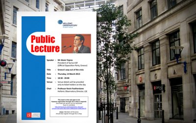 Μετά το Ινστιτούτο Brookings και το Πανεπιστήμιο Κολούμπια, ο πρόεδρος του ΣΥΡΙΖΑ πρόκειται να μιλήσει στις 14 Μαρτίου στο φημισμένο London School of Economics. Θέμα της ομιλίας του θα είναι «Η έξοδος της Ελλάδας από την Κρίση» και συντομνιστής ο Κέβιν Φέδερστοουν, καθηγητής και διευθυντής της έδρας Ελληνικών Σπουδών στο LSΕ. Αν και η προθεσμία υποβολής συμμετοχών για την παρακολούθηση της ομιλίας του Αλέξη Τσίπρα λήγει στις 11 Μαρτίου, οι θέσεις έχουν ήδη εξαντληθεί (η παρακολούθηση είναι ελεύθερη για το κοινό ωστόσο είναι απαραίτητη η δήλωση συμμετοχής). Το London School of Economics είναι η πιο διάσημη σχολή Πολιτικών και Οικονομικών Επιστημών στο Ηνωμένο Βασίλειο ενώ θεωρείται ως μια από τις καλύτερες διεθνώς. ethnos