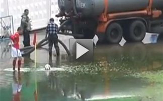 Το νερό είναι τόσο πολύ στη μία γωνία του γηπέδου που χρειάστηκε βυτιοφόρο για να τραβήξει το νερό!