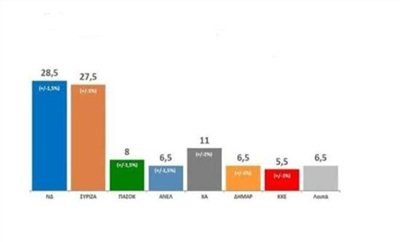 Δημοσκόπηση - Μία μονάδα μπροστά η ΝΔ