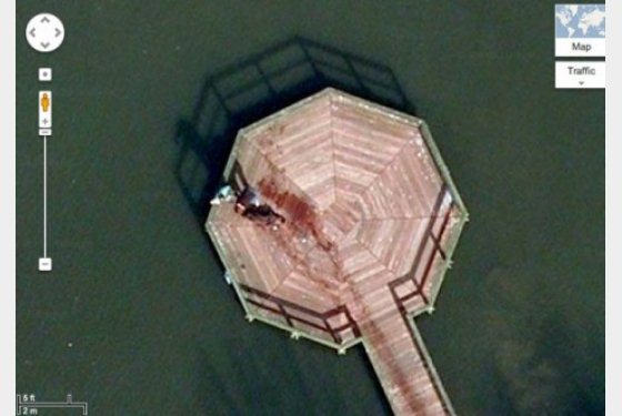 Μια φωτογραφία που έχει διχάσει και (φρικάρει) το διαδίκτυο. Αν είναι φόνος θα είναι ο δεύτερος που έχει αποτυπωθεί ποτέ σε χάρτη της Google. Αν όμως δεν είναι πρόκειται για μια από τις πιο καλοστημένες μπλόφες/ σπαζοκεφαλιές. Δυο άτομα φαίνεται να στέκονται πάνω από ένα πτώμα και είναι έτοιμοι να το πετάξουν στη θάλασσα. Δίπλα στη σκηνή υπάρχουν πολλά ίχνη αίματος. Στο Reddit όμως υπάρχουν κι άλλες εκδοχές, όπως για παράδειγμα ότι δύο φίλοι απολαμβάνουν μαζί με τον σκύλο τους μια ηλιόλουστη ημέρα.