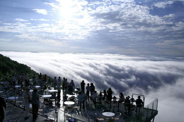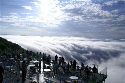 Λόγω των διαφορών των θερμοκρασιών κατά τη διάρκεια της ημέρας και της νύχτας αλλά και του μεγάλου υψομέτρου, σχηματίζεται ένα κατάλευκο σύνολο νεφών πάνω από το βουνό, προσφέροντας ένα εντυπωσιακό θέαμα κατά τη διάρκεια των καλοκαιρινών μηνών μέχρι το Σεπτέμβριο. Οι τυχεροί επισκέπτες μπορούν να απολαύσουν τον καφέ ή το ποτό τους κυριολεκτικά μέσα στα σύννεφα, εμπειρία μοναδική! Το μόνο κακό είναι ότι για να βρεις θέση πρέπει να προσπαθήσεις πολύ. Άλλωστε όλα τα ωραία πράγματα σε αυτή τη ζωή έχουν και ένα τίμημα!