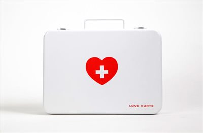 Ένα μικρό κιτ πρώτων βοηθειών όλοι έχουμε στο σπίτι μας για ώρα ανάγκης, για να αντιμετωπίσουμε έναν μικροτραυματισμό και να δέσουμε ένα απλό τραύμα. Για μια δύσκολη στιγμή… Περιέχει συνήθως γάζες, οξυζενέ, ιώδιο, χανζαπλάστ… Και είναι πάντα απαραίτητο τόσο στο σπίτι όσο και στο αυτοκίνητο. Η σχεδιάστρια Melanie Chernock σκέφτηκε πως βαλιτσάκι πρώτων βοηθειών χρεαζόμαστε όχι μόνο για τα χτυπήματα στη σάρκα μας αλλά και για τα τραύματα στην ψυχή, που προκαλούνται από τι άλλο, από έναν χωρισμό.