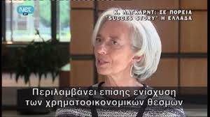 Το πρόγραμμα για την ελληνική οικονομία, παρά τη δύσκολη δημοσιονομική προσαρμογή, είναι λίγο-πολύ στη σωστή τροχιά δήλωσε σε συνέντευξή της στη ΝΕΤ η Κριστίν Λαγκάρντ. «Μη χαλαρώνετε, δεν πρέπει να πάνε χαμένες οι θυσίες», λέει η γενική διευθύντρια του ΔΝΤ.
