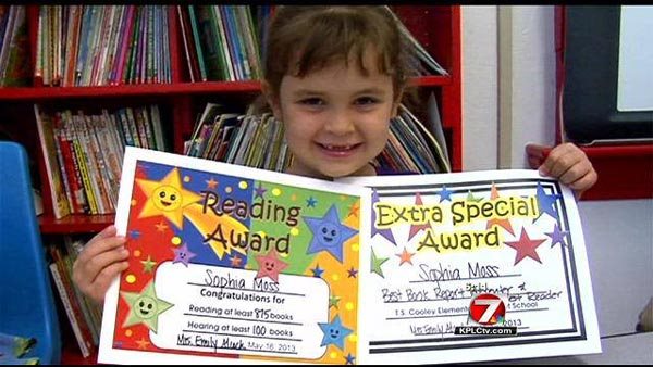 Η 5χρονη Sophia Moss είναι το λιγότερο «βιβλιοφάγος» αφού κατάφερε να διαβάσει 875 βιβλία μέσα σε έναν χρόνο, εκπλήσσοντας τους πάντες με την αγάπη της στο διάβασμα. Το κορίτσι πηγαίνει στο νηπιαγωγείο T.S. Cooley Elementary School Magnet στην Lake Charles των ΗΠΑ και η βιβλιοθήκη του σχολείου δεν μπορεί να ακολουθήσει τους ρυθμούς της. Διαβάζοντας περίπου 20 βιβλία την εβδομάδα η μικρή Sophia θα μπορούσε επάξια να κερδίσει μια θέση στα Ρεκόρ Γκίνες.