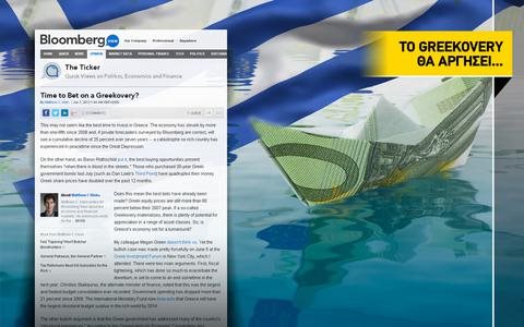 Ήρθε άραγε η ώρα να επιστρέψουν οι επενδυτές στην Ελλάδα, ποντάροντας σε ένα «Greekovery» (ανάκαμψη της ελληνικής οικονομίας) που θα δώσει τη θέση του στο διαβόητο «Grexit» (έξοδο της Ελλάδας από το ευρώ) αναρωτιέται αρθρογράφος του Bloomberg, εκφράζοντας αμφιβολίες για το κατά πόσο η συγκρατημένη αισιοδοξία για ανάρρωση του Έλληνα ασθενή, είναι αρκετή ώστε να δημιουργήσει κλίμα εμπιστοσύνης στους επενδυτές.