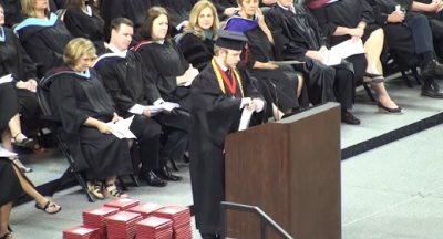 Αλλά αυτό δεν εμπόδισε τον Roy Costner IV της Liberty High School. Έσκισε την ομιλία αποφοίτησής του μπροστά σε όλους και άρχισε να μιλάει για την Χριστιανική ανατροφή του.