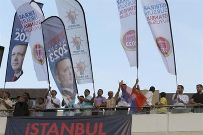 Το κυβερνών κόμμα Δικαιοσύνης και Ανάπτυξης (AK) του τούρκου πρωθυπουργού Ρετζέπ Ταγίπ Ερντογάν ανέφερε σήμερα πως δεν υπάρχει περίπτωση προκήρυξης πρόωρων εκλογών, έπειτα από μία εβδομάδα κατά την οποία σημειώθηκαν οι σφοδρότερες αντικυβερνητικές διαδηλώσεις των τελευταίων δεκαετιών. "Οι δημοτικές εκλογές θα διεξαχθούν το Μάρτιο του 2014, οι προεδρικές εκλογές τον Αύγουστο του 2014 και οι βουλευτικές εκλογές τον Ιούνιο του 2015 και μία αλλαγή του προγράμματος αποκλείεται", δήλωσε στους δημοσιογράφους ο αναπληρωτής πρόεδρος του κόμματος Χουσεΐν Τσελίκ, έπειτα από μία σύνοδο της κεντρικής επιτροπής του AK. agelioforos