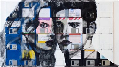 Με ποιο τρόπο; Δημιουργώντας εκπληκτικά πορτρέτα από δισκέτες! Γυναικεία και αντρικά πρόσωπα εμφανίζονται στον καμβά, σε μια πρωτότυπη έκφραση ζωγραφικής τέχνης, υποδηλώνοντας τρόπον τινά τη σχέση της τεχνολογίας με την καλλιτεχνική δημιουργία.