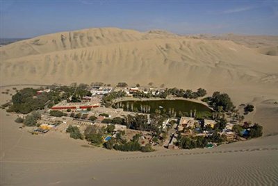 Το χωριό Huacachina βρίσκεται στη μέση της ερήμου της περιοχής Ica του Περού. Είναι ένα μικρό χωριό με λιγότερους από 150 κατοίκους. Η ιδιαιτερότητά του ωστόσο είναι ότι έχει χτιστεί γύρω από μια μικρή φυσική λίμνη, από την οποία έχει πάρει και το όνομά του.Το νερό της λίμνης δίνει ζωή σε φυτά και δέντρα και οπότε το χωριό είναι καταπράσινο, σε αντίθεση με την τριγύρω περιοχή η οποία χαρακτηρίζεται από γυμνούς αμμόλοφους με ύψος αρκετών δεκάδων μέτρων.Εξαιτίας αυτού, η λίμνη έχει ονομαστεί «η όαση της Αμερικής».Με τα χρόνια, το χωριό Huacachina έχει μετατραπεί σε δημοφιλή προορισμό για τους κατοίκους των κοντινών πόλεων, αλλά και για εκατοντάδες τουρίστες. Εκτός φυσικά από το κολύμπι στα νερά της λίμνης, η περιοχή προσφέρεται για μηχανοκίνητες εκδρομές στους κοντινούς αμμόλοφους καθώς επίσης και για σκι στην άμμο.