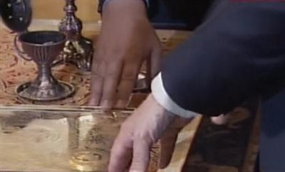 12.35 Ο πρόεδρος της Δημοκρατίας προσέρχεται στην αίθουσα όπου βρίσκεται και ο Αρχιεπίσκοπος Αθηνών και πάσης Ελλάδος κ. Ιερώνυμος.