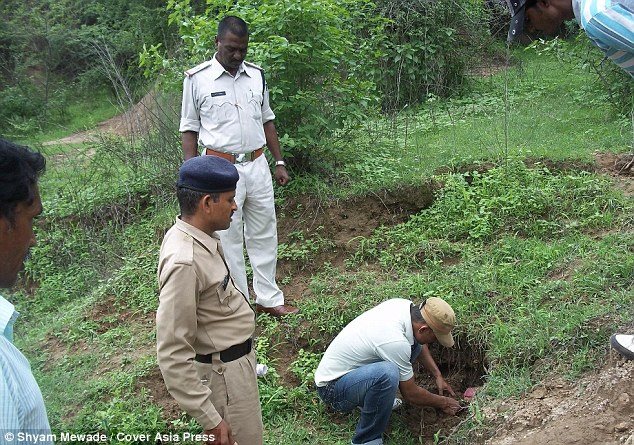 Σοκάρουν οι φωτογραφίες από την Ινδία, που δείχνουν άντρες των αρχών να ξεθάβουν από το χώμα ζωντανό ένα κοριτσάκι, το οποίο σχεδόν μόλις είχε γεννηθεί.